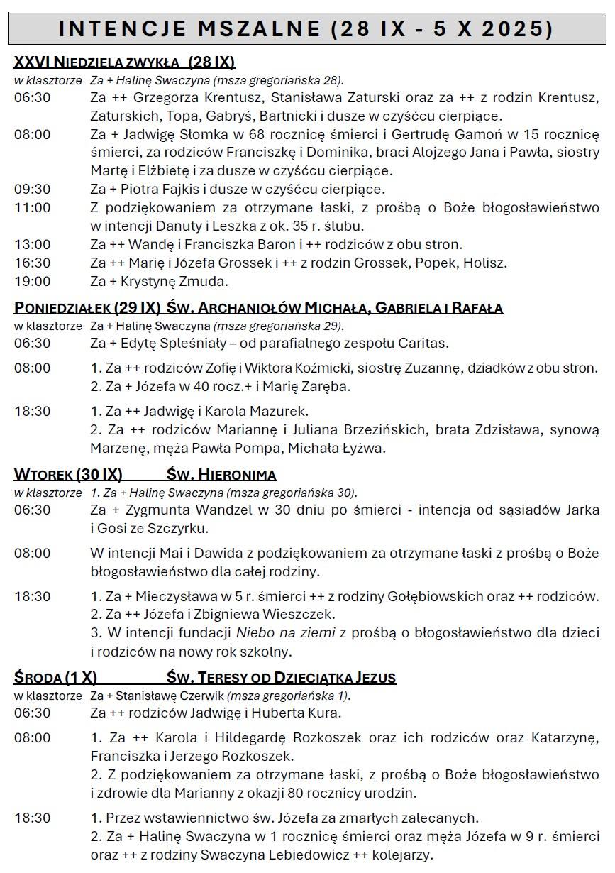Jeśli komuś nie pasuje wyznaczony termin, niech się skontaktuje z farorzem.